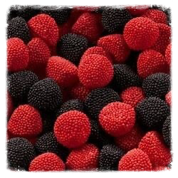 Ingrédients : Sirop de glucose, eau, sucre, amidon modifié de blé, gélatine de boeuf Halal, amidon modifé de pomme de terre, acidifiants : E330, E270, pectine, colorants : concentré de carottes et cassis, E150c, E132, arômes, émulsifiant : gomme arabique, agent d'enrobage : huile végétale (palme), E901.Allergène : contient du gluten.