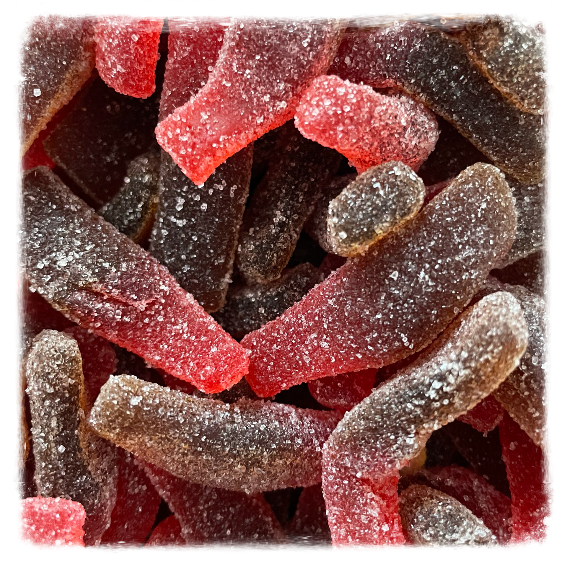 - Ingrédients : (sous réserve de modification par le fabricant) Sirop de glucose, sucre, eau, gélatine de boeuf, amidon modifié de pomme de terre, acidifiants : E330, E270, E296, arôme, colorants : E150c, E163, E129, E160a, agent d'enrobage : cire de carnauba. Sans Gluten.